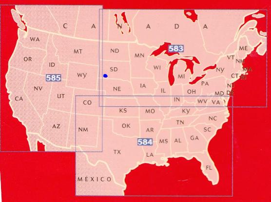 kaart overzicht usa, blauwe stip boven en blauw omlijnd beneden is Pine Ridge op de grens van South Dakota en Nebraska